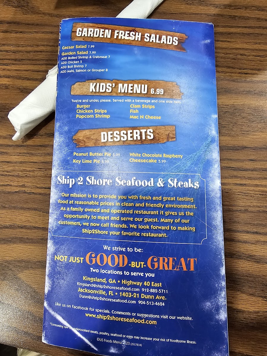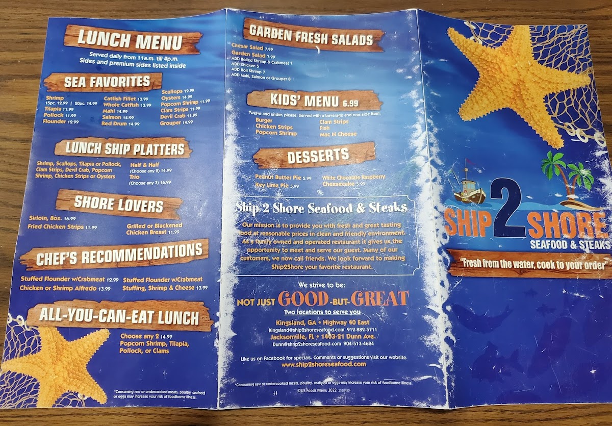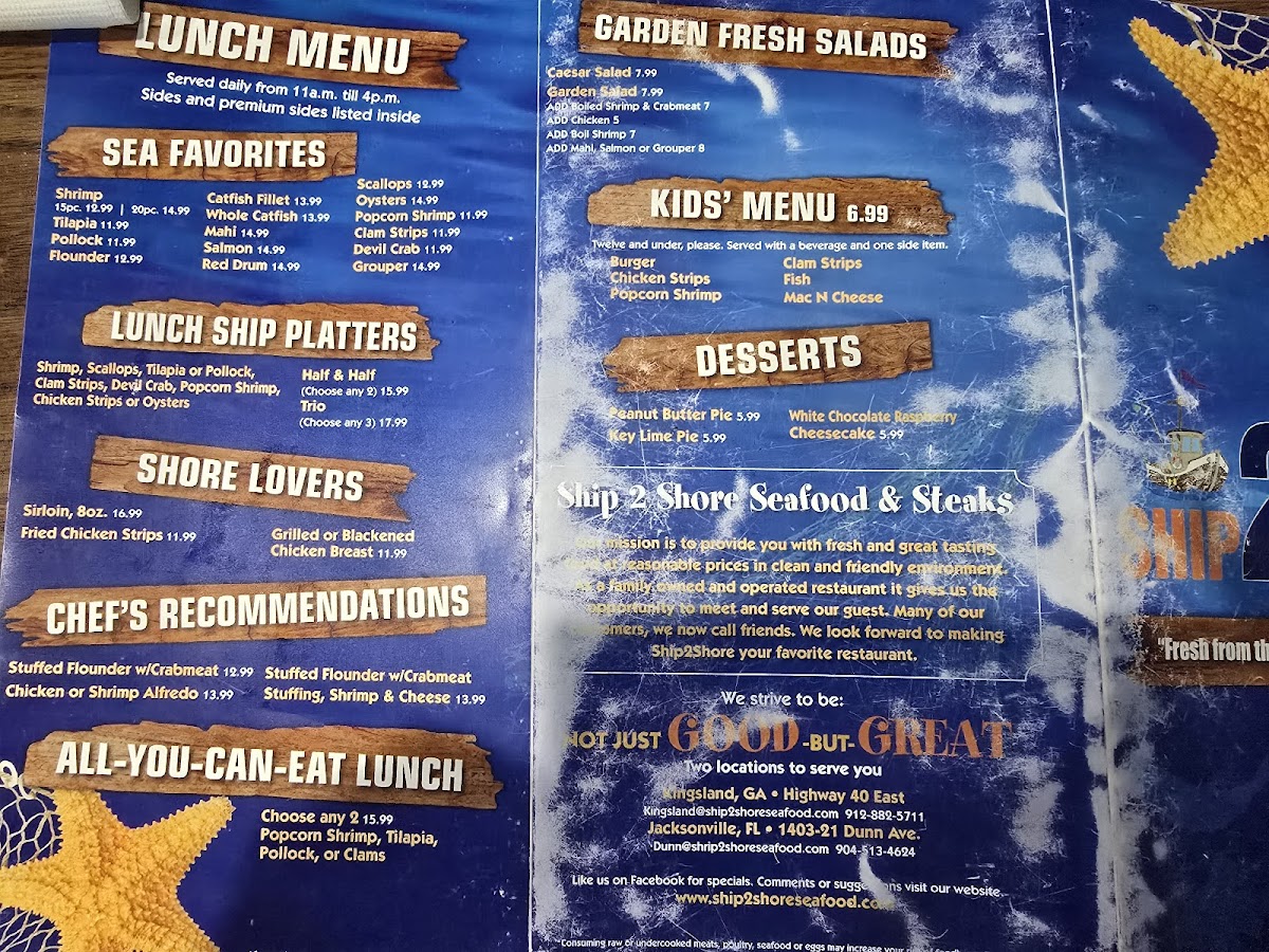 Ship 2 Shore Seafood & Steaks Menu (Update 2025)