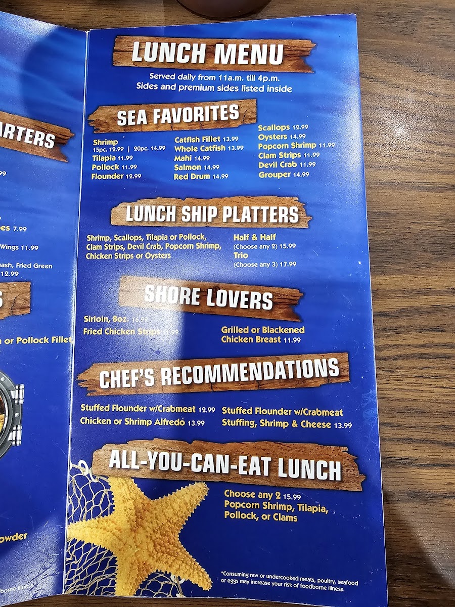 Enjoy family-friendly, relaxing surroundings, where the attentive staff, known for their warm hospitality, treat every guest like family. Diners appreciate the reasonable prices and generous portions, making this spot a great choice for both casual meals and special gatherings. Dive into their all-you-can-eat offerings or savor a beautifully cooked steak paired with classic sides like hush puppies and grits. Whether you're hungry after a long journey or just craving great seafood, Ship 2 Shore Seafood & Steaks is a destination worth visiting.